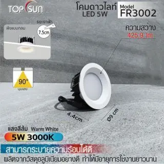 โคมดาวไลท์ LED ชนิดฝังแบบกลม รุ่น FR1040 TOPSUN