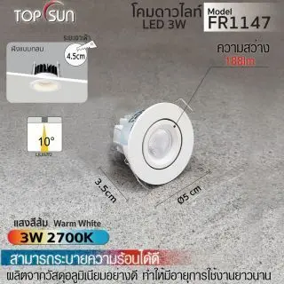 โคมดาวไลท์ LED ชนิดฝังแบบเหลี่ยม รุ่น FR1156 TOPSUN